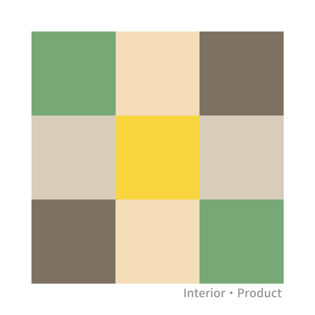 色彩で社会を元気に カラーオン Color પર ナチュラルなイメージのパレット 私たちの心をほっとさせてくれる中明度 中彩度のアースカラーと 気持ちを上げてくれる明るい黄色のアクセントのバランスがいい感じの配色例です Up Town Resort